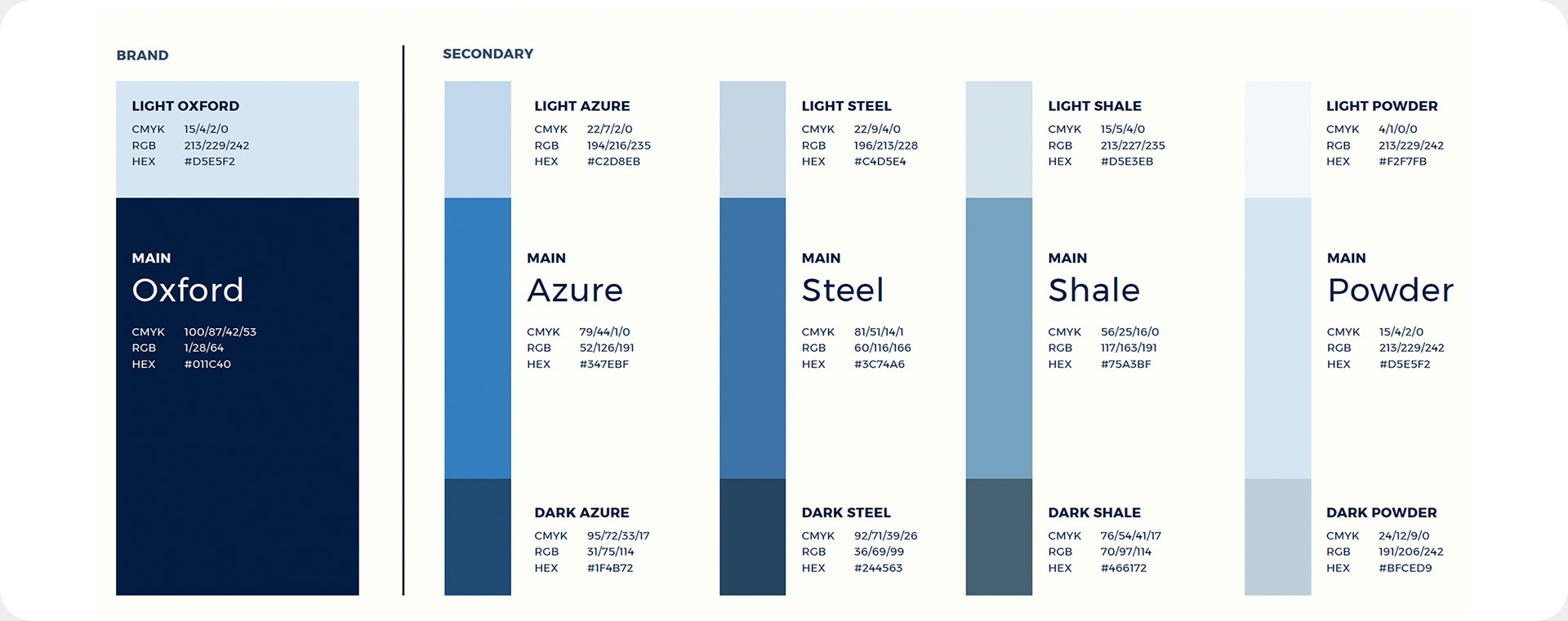 The primary color, Oxford Blue (#011C40), was chosen to signal heritage, quality, and integrity